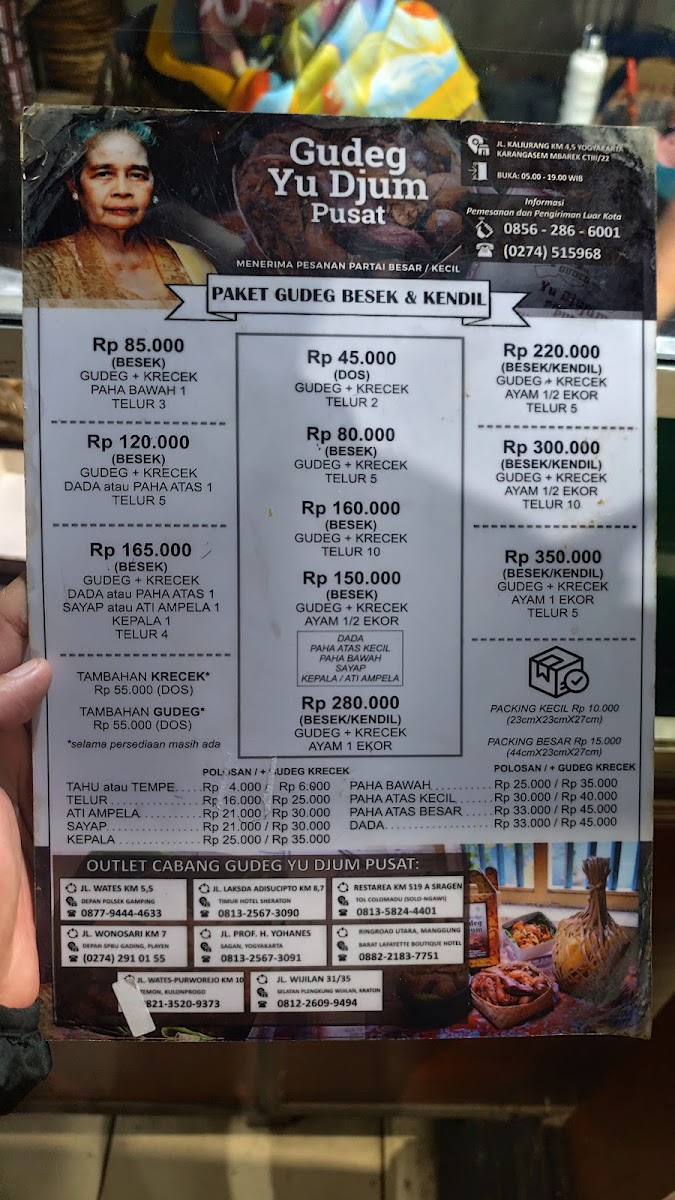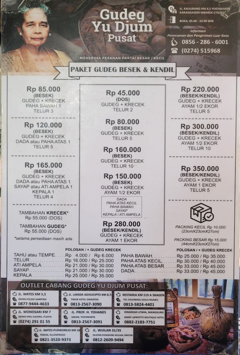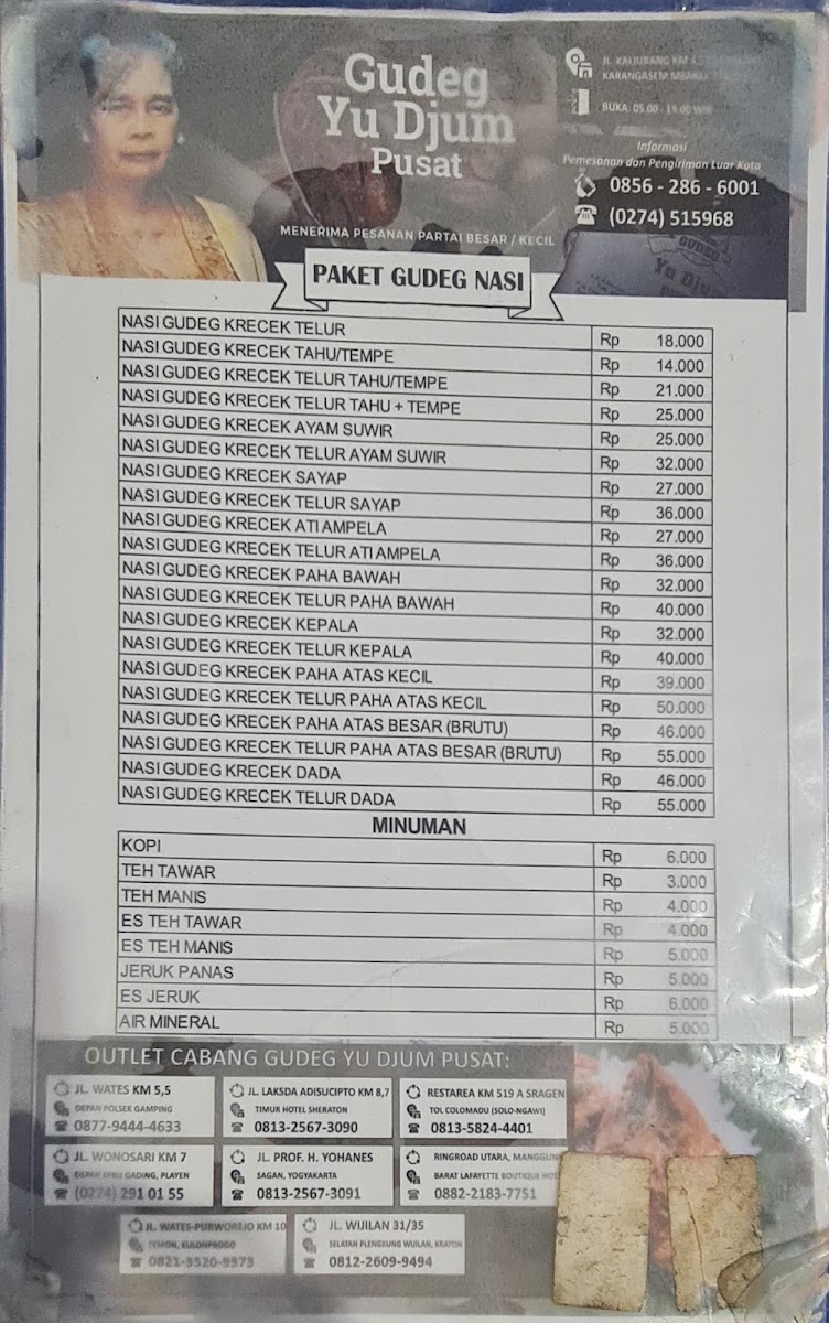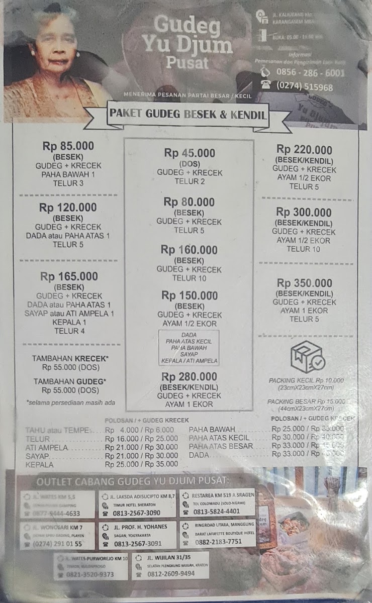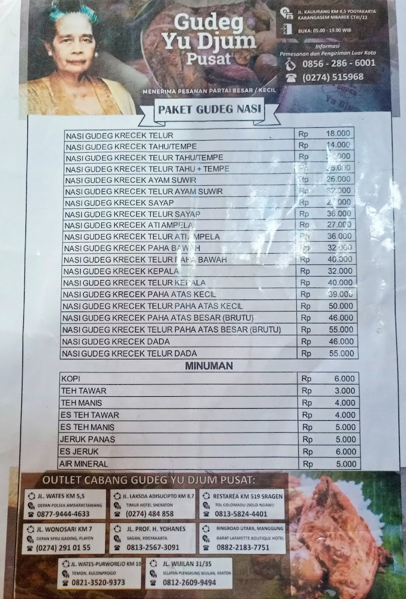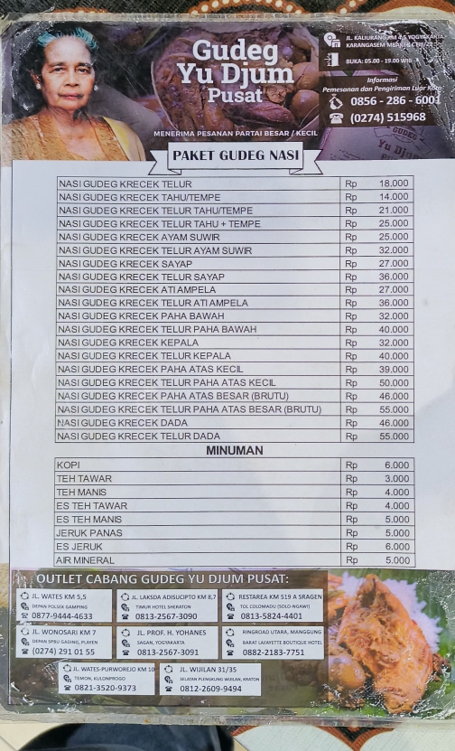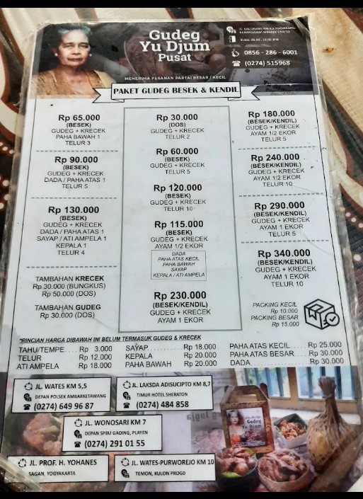 Introducing "Gudeg Yu Djum Pusat," a culinary gem nestled in the heart of Yogyakarta, renowned for its authentic nasi gudeg. This traditional dish, primarily featuring young jackfruit, is a true representation of Yogyakarta's rich culinary heritage. Each plate showcases a delightful harmony of flavors, combining sweet and savory elements, with tender chicken and spicy krecek (crispy beef skin) adding a burst of excitement to your taste buds.